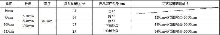 隔墻板規(guī)格參數(shù):